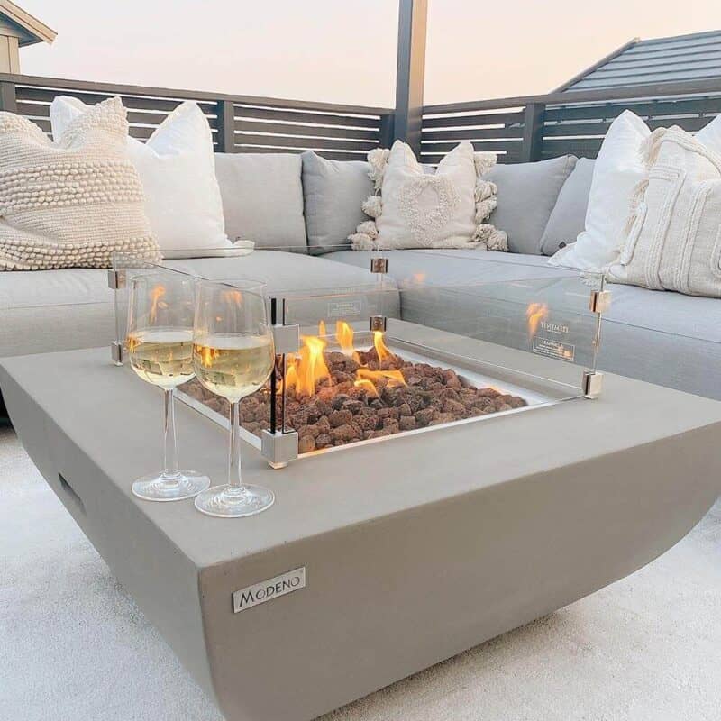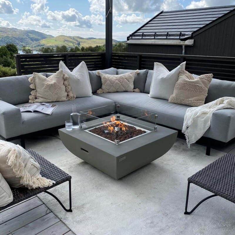 Ildbordet har en stilfuld grå farve, der passer perfekt til det strømlinede, firkantede design. Målene på 86x86x37 cm giver bordet en ideel størrelse, der både er funktionel og æstetisk tiltalende, samtidig med at det tilføjer en hyggelig stemning til ethvert udendørs miljø.