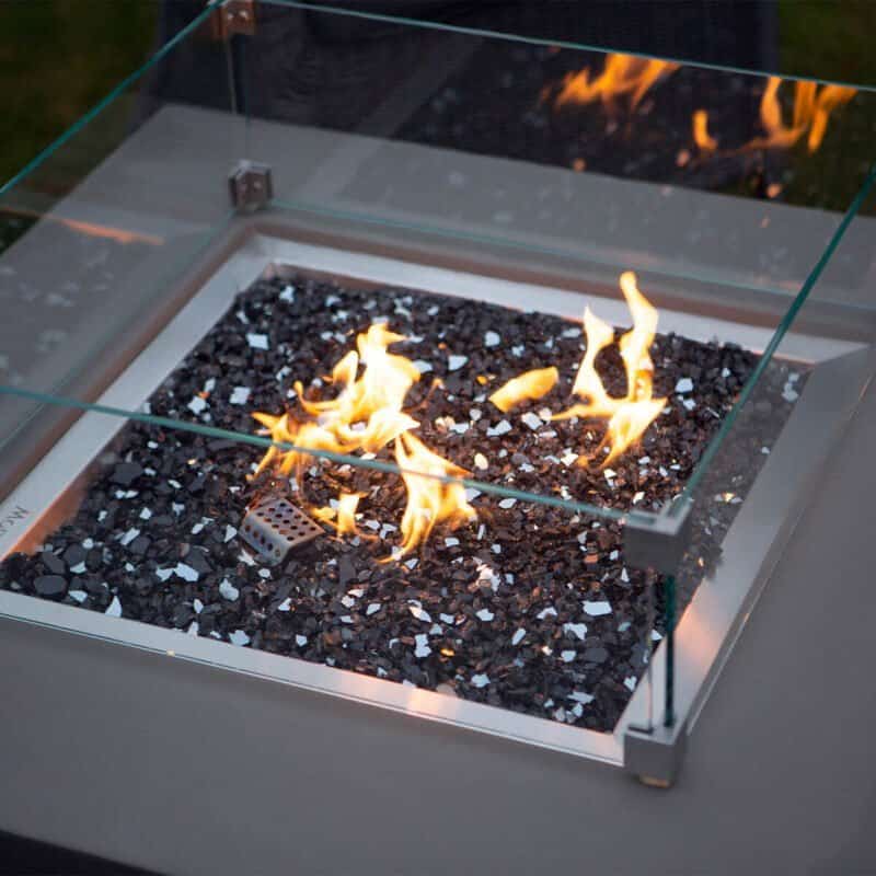 For at forbedre din oplevelse endnu mere kan du tilkøbe et rustfrit ståldæksel til brænderen, der tilføjer ekstra beskyttelse og elegance. En firkantet vindskærm er også tilgængelig for at hjælpe med at beskytte flammerne mod vind, hvilket sikrer, at du kan nyde varmen fra dit ildbord, selv på blæsende dage.