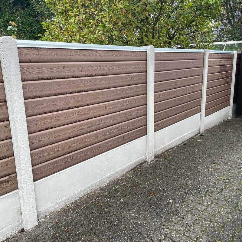 Hegnet monteres med robuste, danskproducerede betonstolper i en klassisk grå betonfarve. Stolperne er armerede for maksimal styrke og holdbarhed og har præcise falser, der gør montering af Blokhus kompositbrædderne enkel og stabil. Stolperne har en afrundet top, der tilfører hegnet et stilrent og elegant udtryk. I bunden af hegnet sikrer en armeret betonbundplade på 4x30x189 cm en flot afslutning, samtidig med at den beskytter brædderne mod fugt og direkte kontakt med jorden,