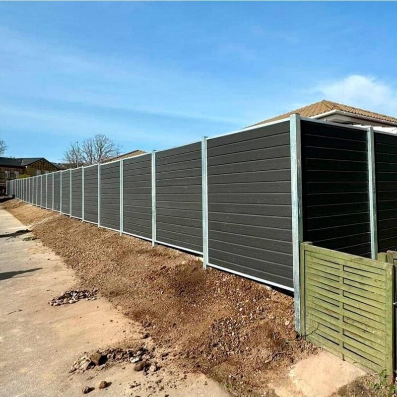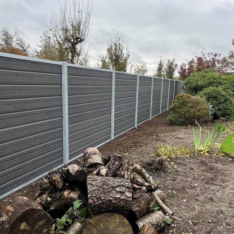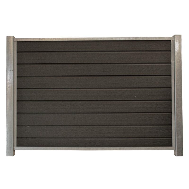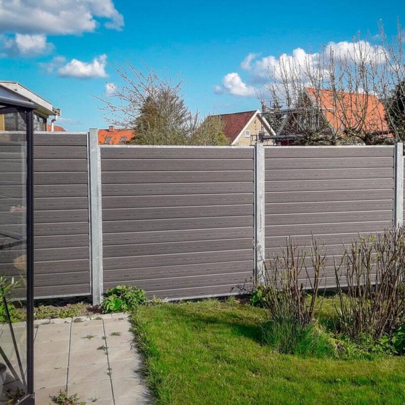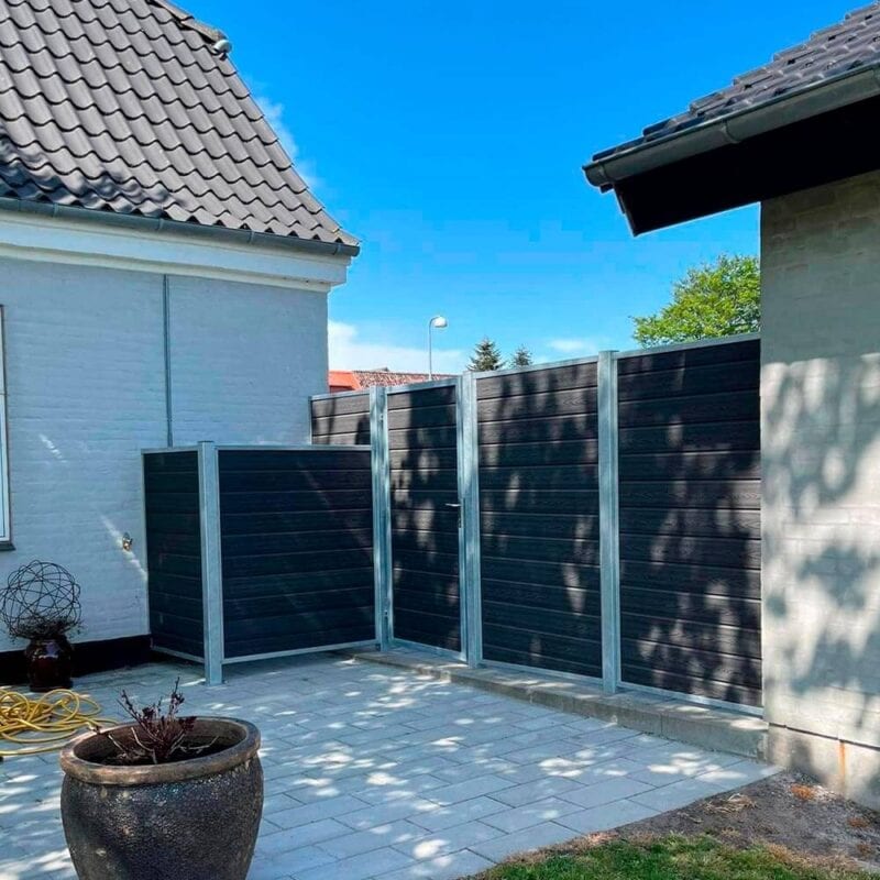 Skab en moderne og langtidsholdbar afskærmning med Komposit Lige i sort, kombineret med stålstolper for en solid og stabil løsning. Brædderne har en flot træstruktur og en afrundet profil, der giver et stilrent og elegant udtryk til enhver have eller terrasse.