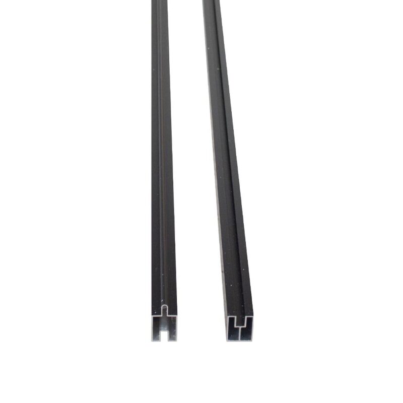 Vores top- og bundskinner er pulverlakeret i en smuk sort farve, der passer perfekt til sorte alustolper og skaber en elegant og sammenhængende æstetik. Disse skinner er designet til at passe præcist til vores standard hegnslængder på 180 cm i bredde og kan nemt afkortes efter behov for at passe til din specifikke installation.
