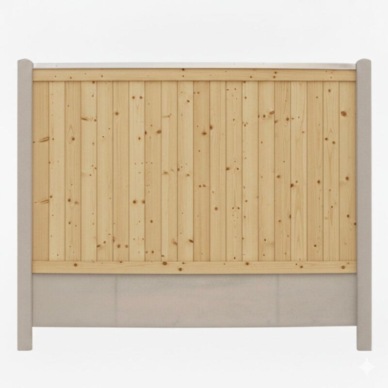 Hegnet monteres med solide, danskproducerede betonstolper i en stilren grå betonfarve. Stolperne er armerede for maksimal styrke og holdbarhed og har falser, hvor hegnselementerne nemt kan indsættes for en sikker og stabil konstruktion. Stolperne har en afrundet top, der giver hegnet et elegant og fuldendt udtryk. I bunden af hegnet sikrer en armeret betonbundplade på 4x30x189 cm, at træet ikke har direkte kontakt med jorden, hvilket beskytter mod fugt og forlænger levetiden.