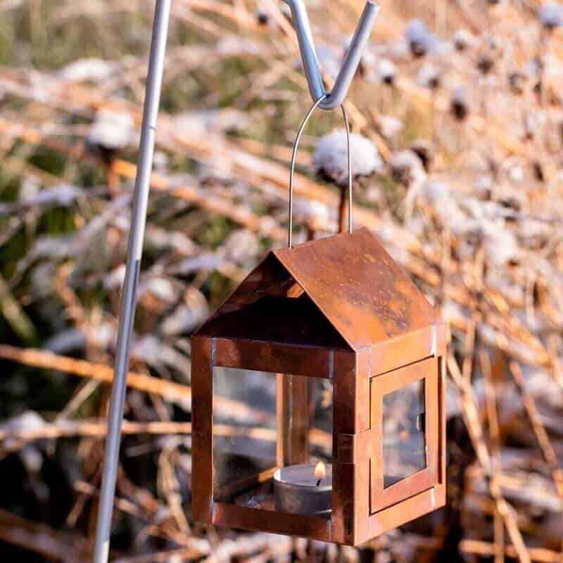 Denne fine lille hængelanterne i kobber er fremstillet af 100% massivt forpatineret kobber, komplet med en praktisk wirehank til ophæng. Dens design gør den ideel til at tilføje et strejf af varme og hygge til små hjørner, både indenfor og udenfor. Forestil dig at hænge den blandt oliven- eller citrustræer i sommermånederne, og flytte den til dine ceder- eller lærketræer, samt andre ‘juletræer’ i vinterperioden. Denne alsidige lanterne kan også nemt hænges på snore eller kroge, eller blot placeres på en overflade, hvor der er behov for lidt ekstra stemning i indretningen.