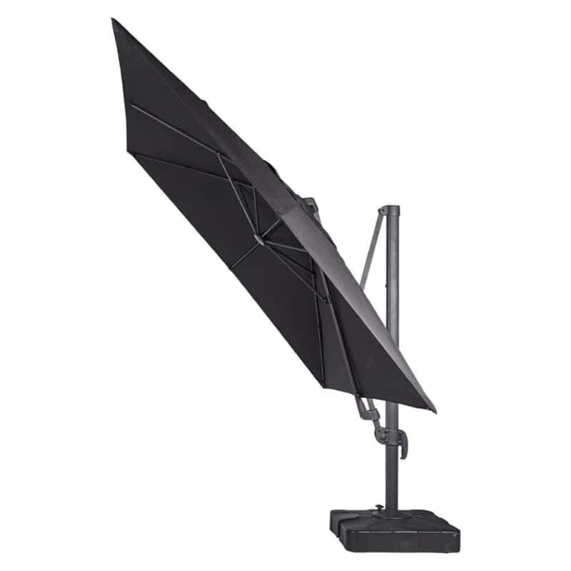 Vores store parasol med fod og 360 graders drejesystem med tilt, som helt sikkert vil imødekomme dine behov for skygge på varme og solrige dage.