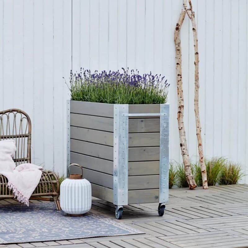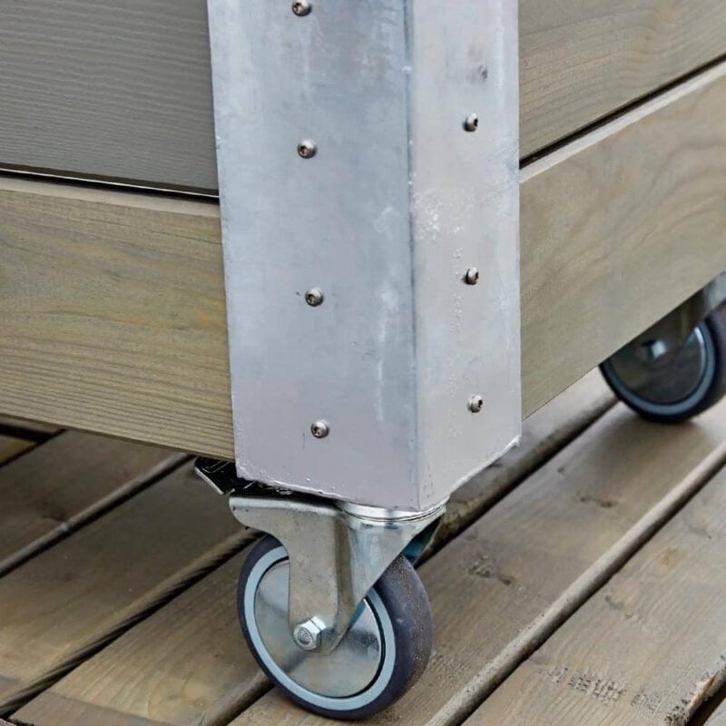 Skal Cubic Blomsterkassen ofte flyttes eller rokeres rundt, anbefaler vi, at udskifte hjulene til Ø100 mm for bedre mobilitet og styrke.
