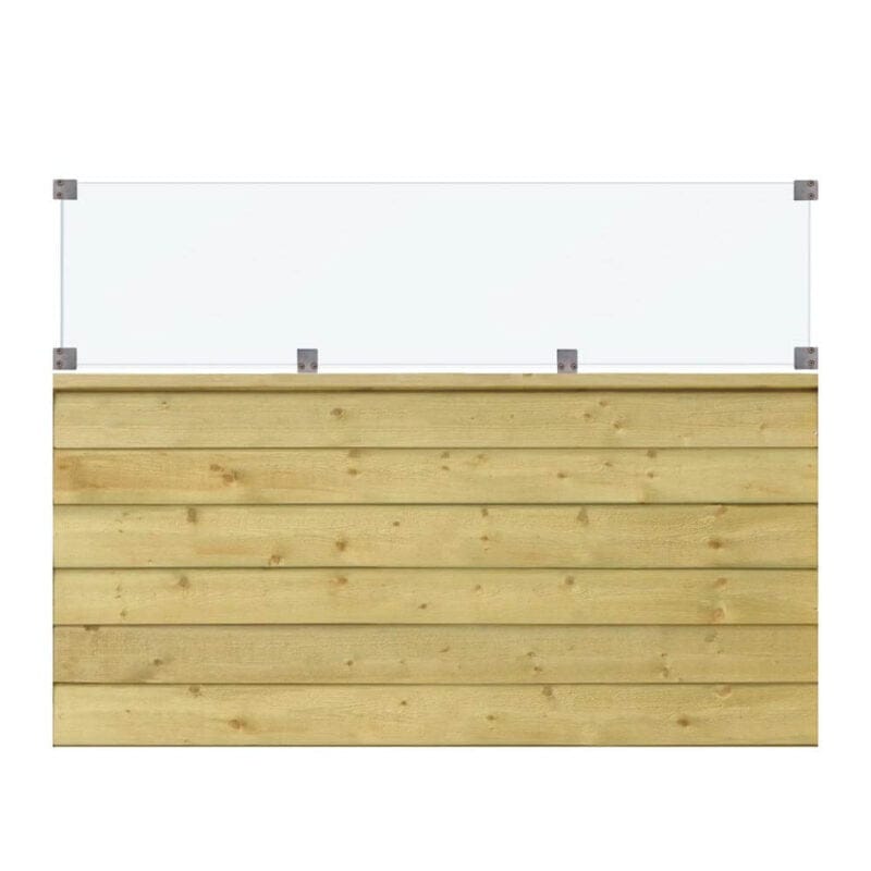 6 stk. profilbrædder og 1 stk. mellemtop-/afslutningsplanke samt 1 stk. glaselement inkl. beslag – ekskl. skruer til montering af hegn.