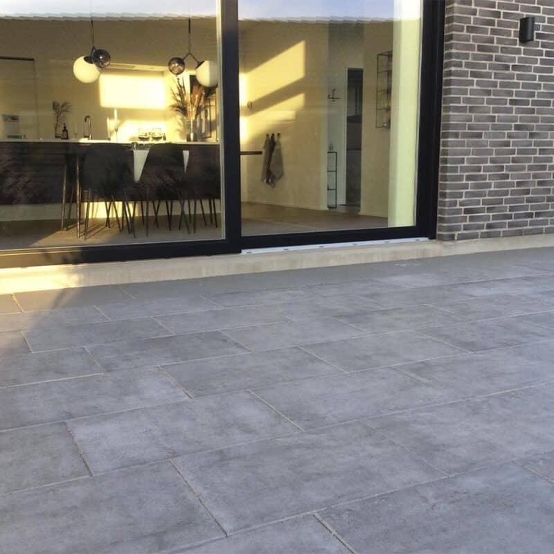 Når du lægger fliser, skal der altid være plads til en fuge mellem stenene. Vi anbefaler en fuge på 3-5 mm, så fliserne ikke ligger direkte i betonkontakt. Det mindsker risiko for skader og stabilisere belægningen.