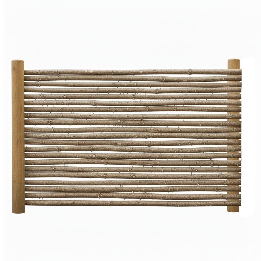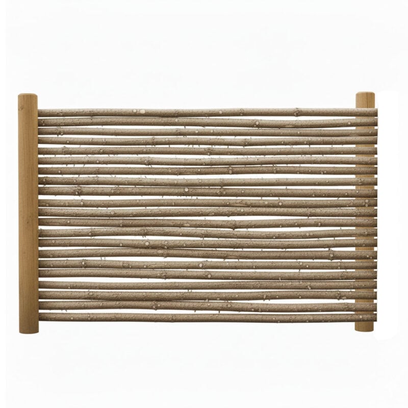 Dette raftehegn er lavet af barkbeklædte rafter med en diameter på 3-7 cm. Hver rafte er savskåret i enderne, hvilket sikrer en flot og ensartet afslutning samt nem montering.