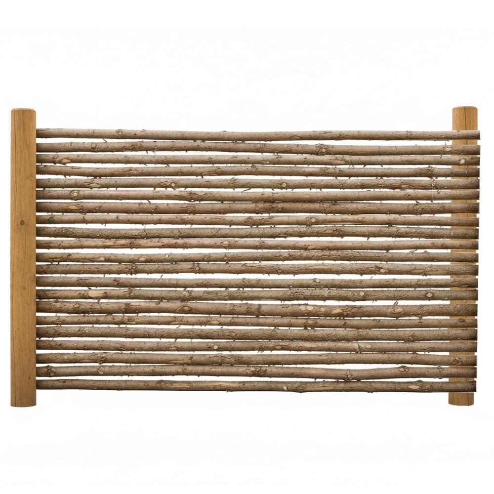 Det naturlige barklag giver hegnet et flot udseende, der falder smukt ind i omgivelserne og skaber en rustik afskærmning i haven. Over tid vil barken løsne sig og falde af, hvilket er en del af den naturlige ældningsproces.