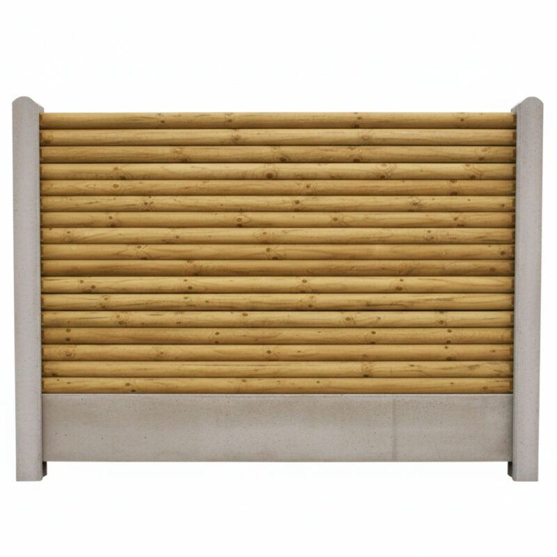 Hegnet leveres med grå betonstolper, der har indstøbte falser, hvilket gør det nemt at lægge rafterne ned og sikre en stærk og holdbar konstruktion.