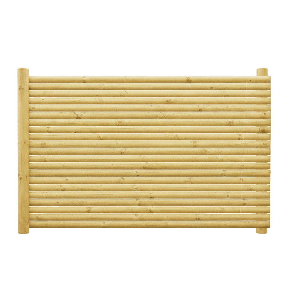 Dette raftehegn er opbygget af trykimpregnerede rafter med en diameter på Ø6 cm og en længde på 220 cm. Hver rafte har en smuk lille fas i begge ender, hvilket bidrager til et flot og ensartet udtryk i din have.