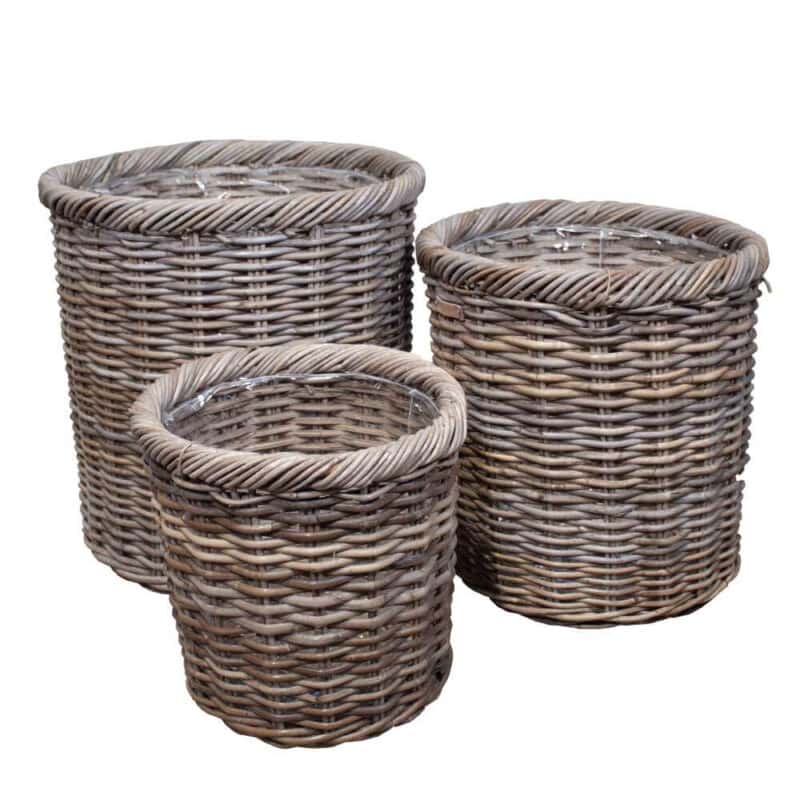 Kurvesættet er fremstillet i rattan, som er utrolig holdbart materiale. Rattan er kendt for sin vejrbestandighed og kan bruges både indendørs og udendørs. Krukkernes styrke og holdbarhed gør at det vil være et fornuftig og langsigtede valg.