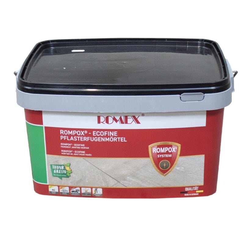 ROMPOX EcoFine Antracit er en avanceret 1-komponent belægningsfugemørtel, der aktiveres ved kontakt med luft og vand. Produktet leveres vakuumpakket for at sikre optimal friskhed og nem anvendelse. Den vandgennemtrængelige fuge er ideel til en bred vifte af belægninger med en fugebredde på 3 mm eller mere.