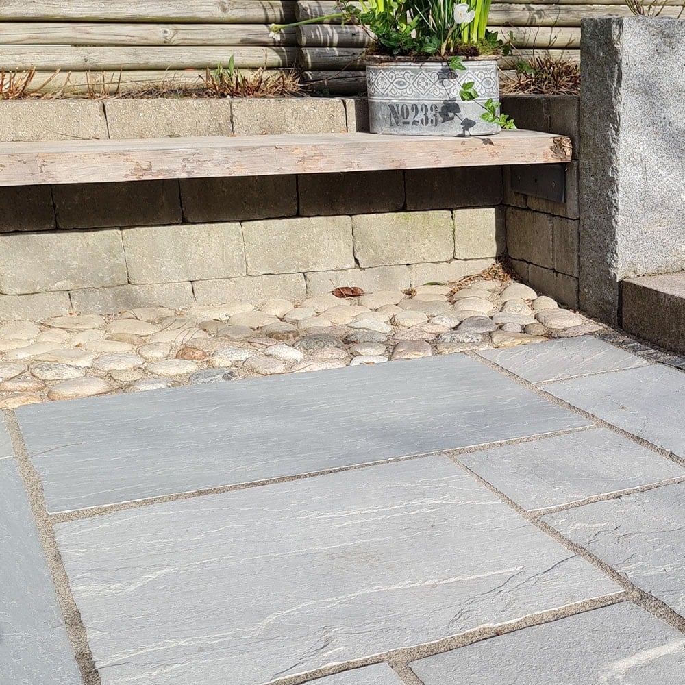 Vores grey sandsten udstråler en klassisk elegance, der komplementerer ethvert hjem. Den byder på et smukt farvespil, der strækker sig over alle de grå nuancer. Dette skaber en interessant og levende overflade, der tilføjer dybde og karakter til din udendørs plads.