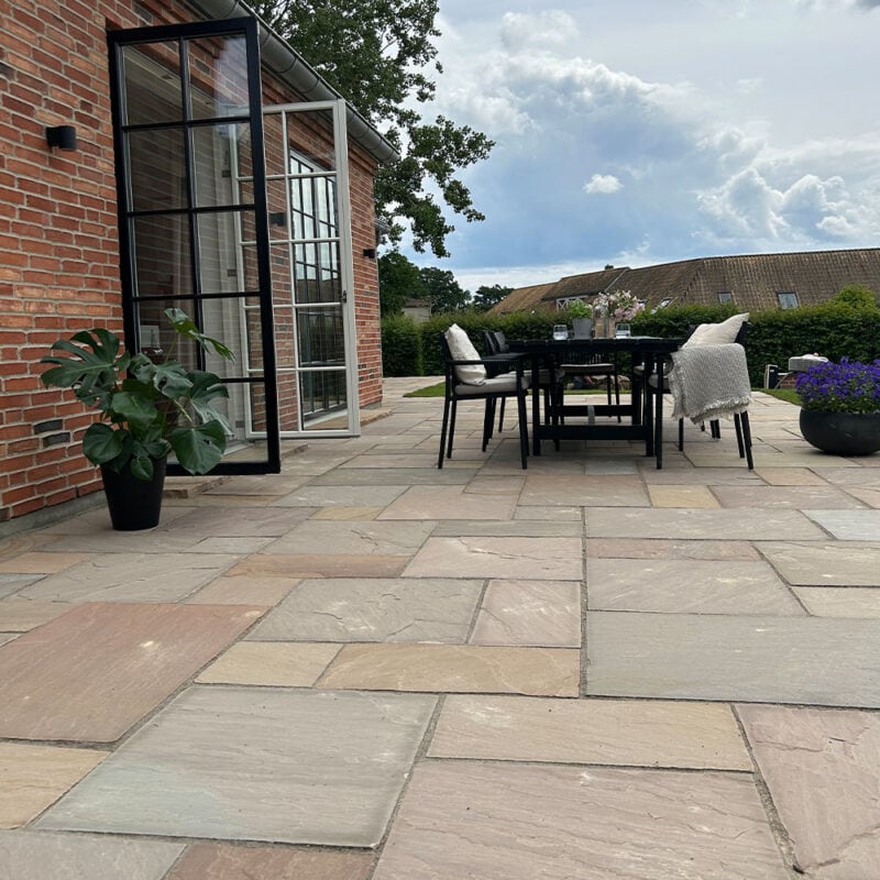 Dette giver dig mulighed for at skabe et unikt og varieret mønster, der passer til dine specifikke behov og stil. Med en tykkelse på ca. 2,5 cm er disse fliser også ideelle til brug på terrasser og gangstier, hvor de vil modstå hverdagens slid uden problemer.