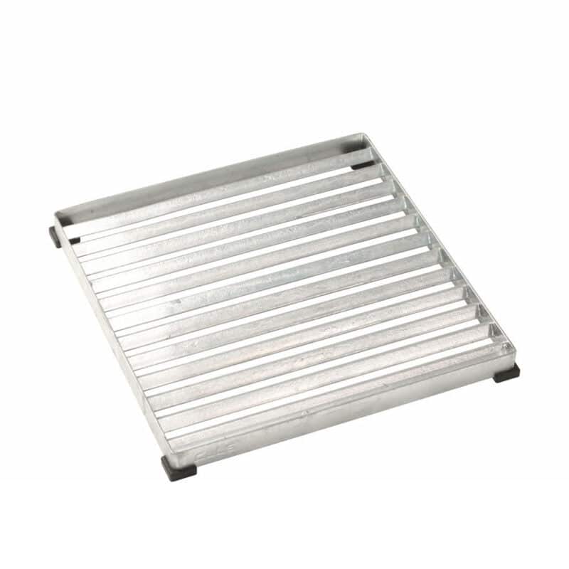 1 stk. rist i varmgalvaniseret stål og 4 stk. sorte plastdupper.