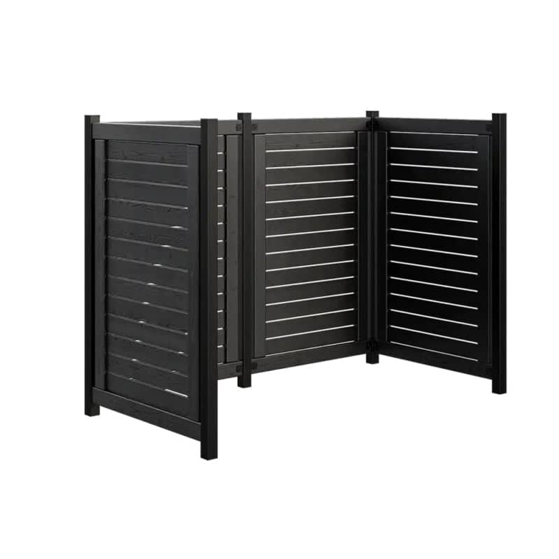 Renovationsskjulet består af hegnsfag i sortmalet træ, som diskret og fint passer til de fleste huse og stilarter.
