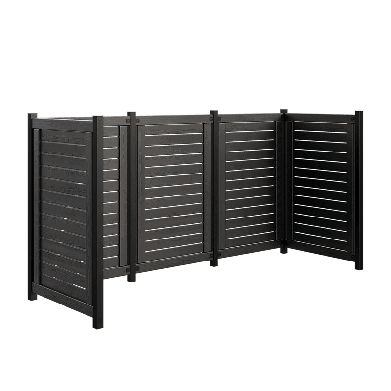 Renovationsskjulet består af hegnsfag i sortmalet træ, som diskret og fint passer til de fleste huse og stilarter.