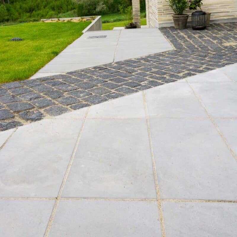 Når du lægger fliser, skal der altid være plads til en fuge mellem stenene. Vi anbefaler en fuge på 3-5 mm, så fliserne ikke ligger direkte i betonkontakt. Det mindsker risiko for skader og stabilisere belægningen.