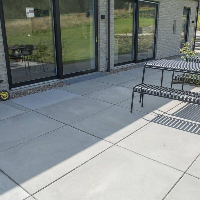Når du lægger fliser, skal der altid være plads til en fuge mellem stenene. Vi anbefaler en fuge på 3-5 mm, så fliserne ikke ligger direkte i betonkontakt. Det mindsker risiko for skader og stabilisere belægningen.