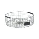 Vores Rund trådkurv er udstyret med sorte gummihåndtag, der ikke kun tilføjer et elegant touch, men også sikrer et behageligt og sikkert greb, når du flytter rundt på kurven. Uanset om du transporterer den fra rum til rum eller bruger den som en bærbar opbevaringsløsning, kan du regne med håndtagets soliditet og komfort. Kurven har også en praktisk sort gummietiket, der giver dig mulighed for at skrive noter, navne eller indholdet af kurven. Dette gør det nemt at organisere dine ejendele på en stilfuld og personlig måde.