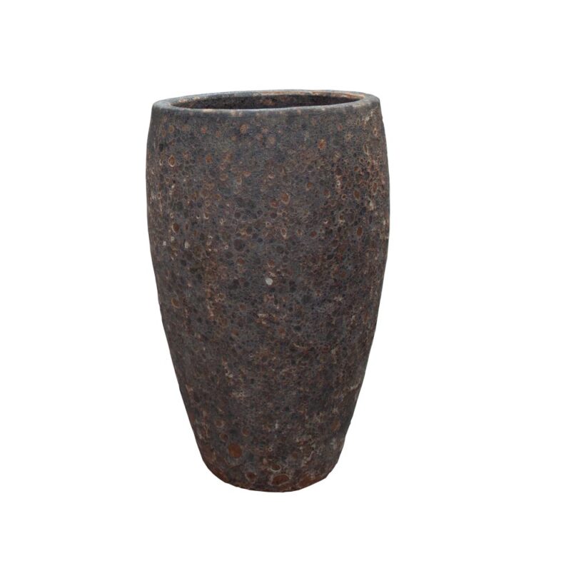 Kepler Brown Lawa er en smuk og holdbar lava-krukke, skabt gennem vietnamesisk håndværk i høj kvalitet. Med en diameter på 38 cm og en højde på 63 cm er den velegnet til både små træer, buske og blomster.