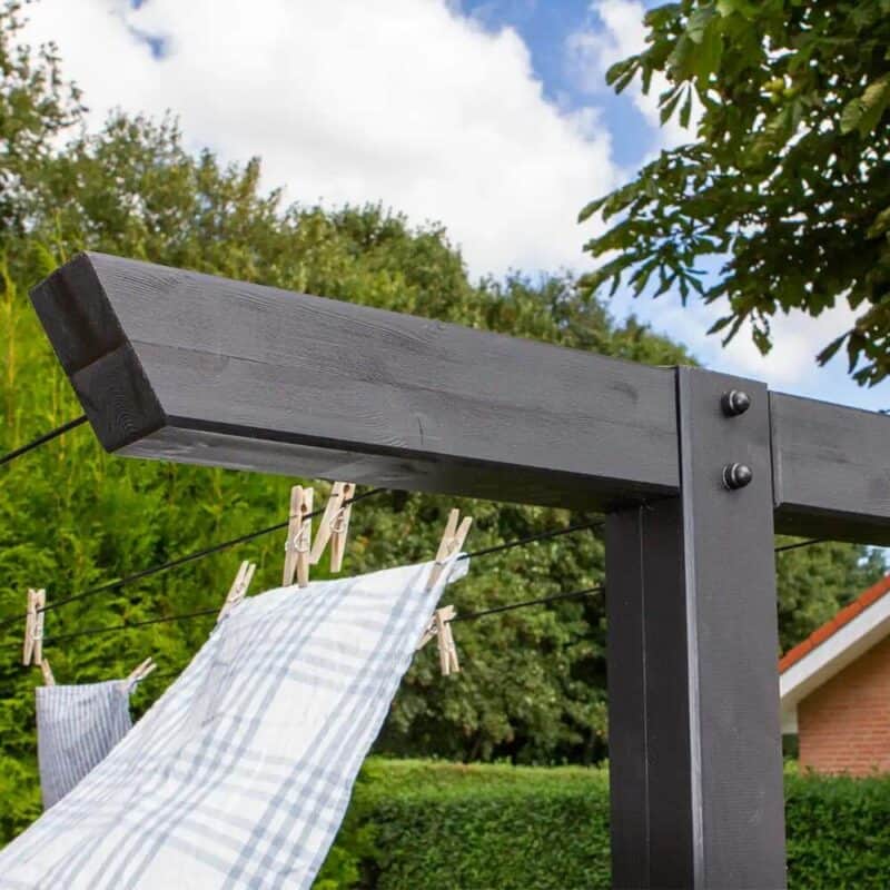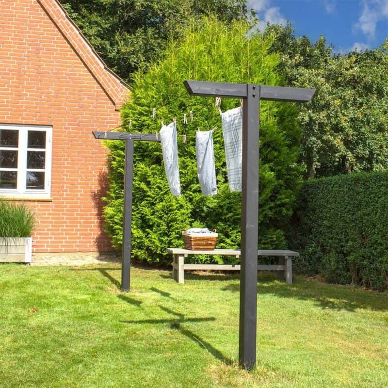 Komplet løsning med tørresnor/beslag og stolper til nedgravning.