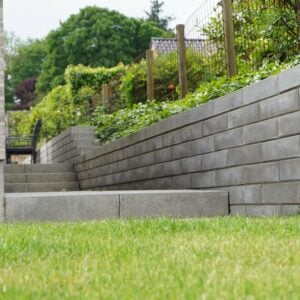 Skala murblokke kan som sagt bruges til at opbygge forskellige højder afhængigt af hældning og fyldmateriale.