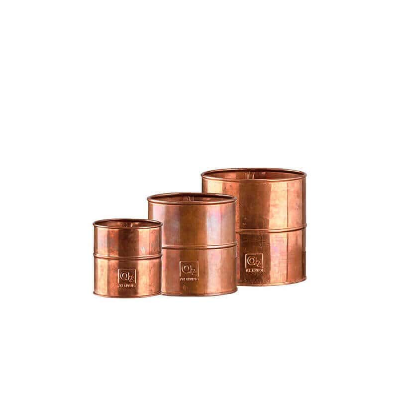 Det er vigtigt at bemærke, at kobberets unikke natur kan give potterne en forpantineret overflade ved udpakning. Små ridser eller variationer i farven er en del af den naturlige patinering af kobberet og vil udjævne sig over tid og give hver potte sit eget karakteristiske udseende. Denne naturlige patinering tilføjer kun til potternes skønhed og gør dem til unikke stykker i dit hjem eller din have.
