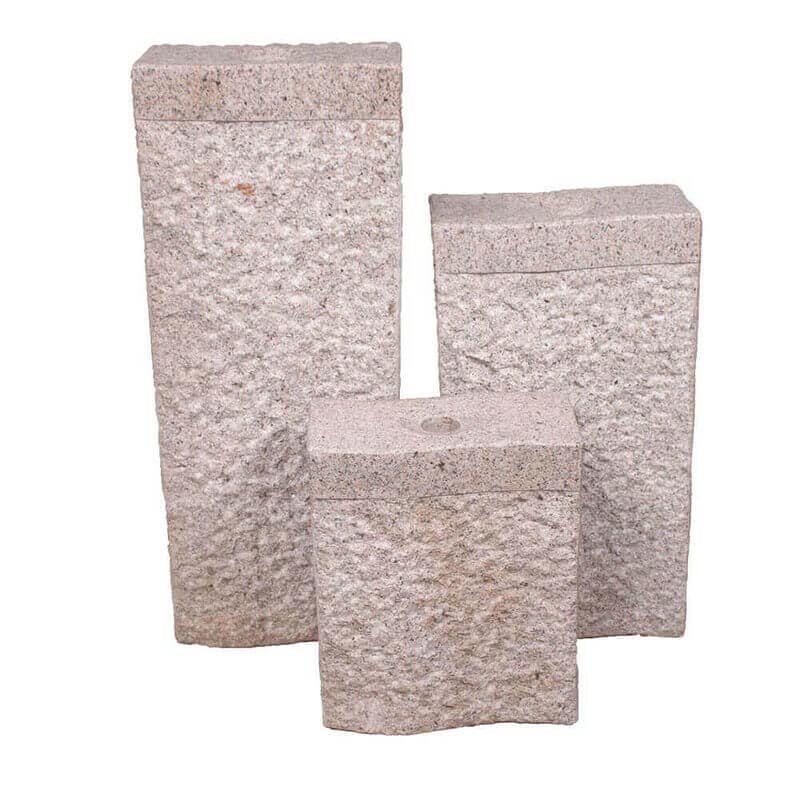 Vandsten “Aflang” består af 3 granitsøjler i rosafarve. De 3 søjler er alle med poleret top og rillede søjle.