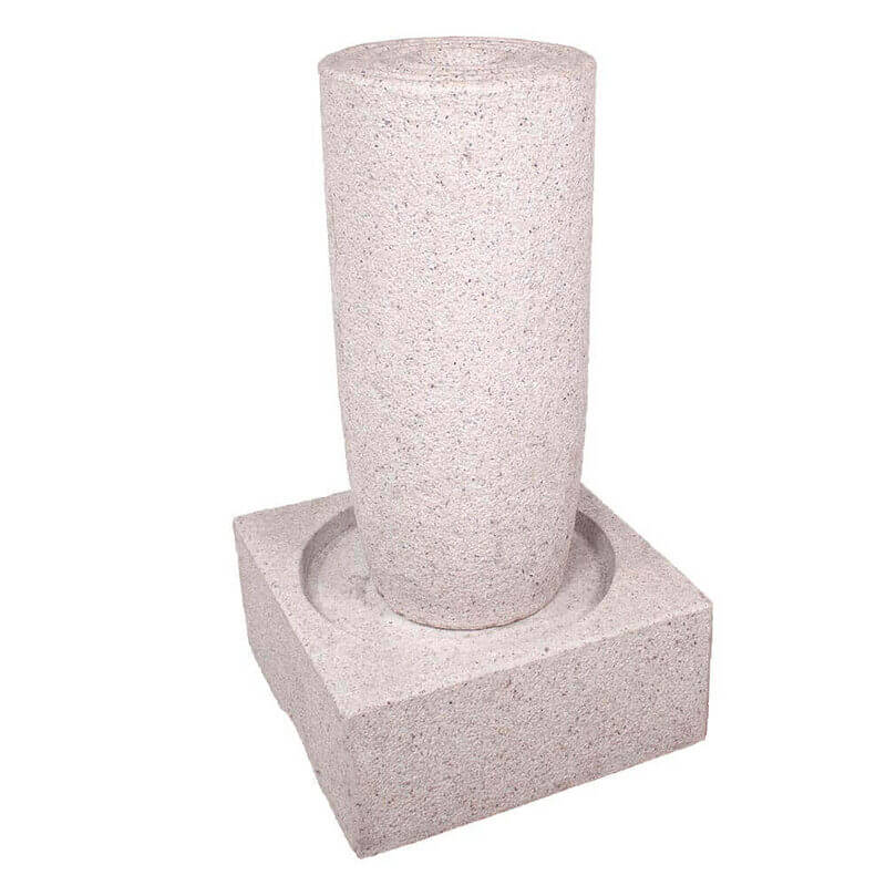 Flot rundlig vandsten produceret i rosa granit. Vandstenen har en groft udseende, men har riller i toppen hvor vandet rinder ud.