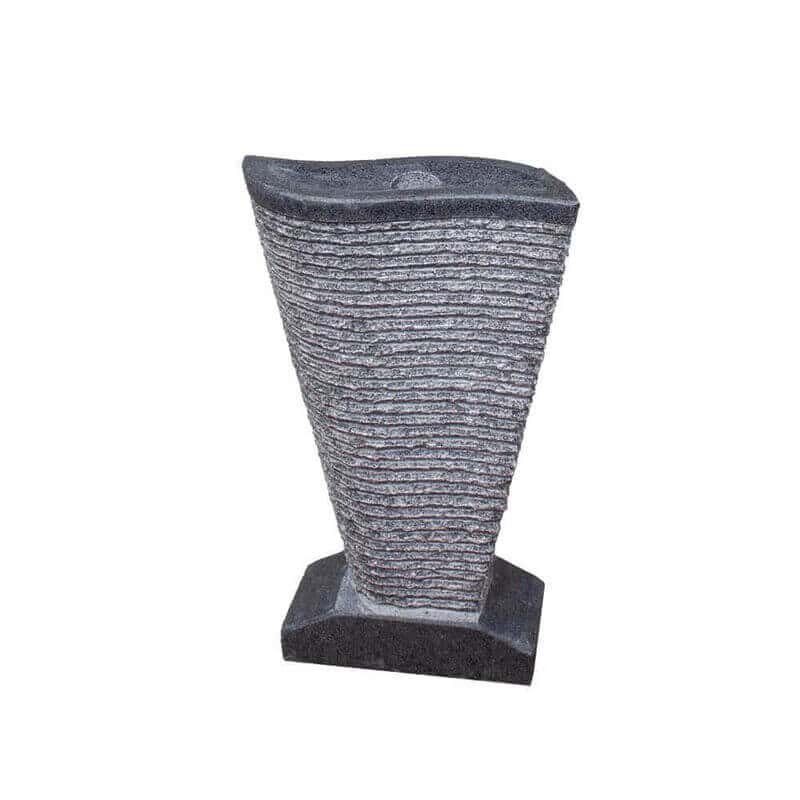 Granit vandsten produceret i mørkegrå / sort granit. Vandstenen har flotte riller opad sit “V” Vandsten har poleret top og granitfod.