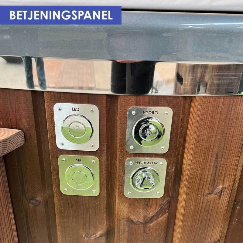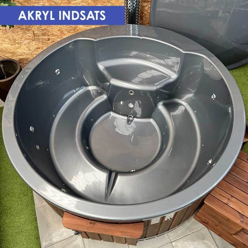 Ydermere er badekarret udstyret med en integreret brændeovn af rustfrit stål, der opvarmes ved hjælp af træ. Ovnen er forsynet med et praktisk vindue for at holde øje med flammerne og en skuffe til nem askehåndtering, hvilket bidrager til en behagelig og effektiv opvarmningsproces.